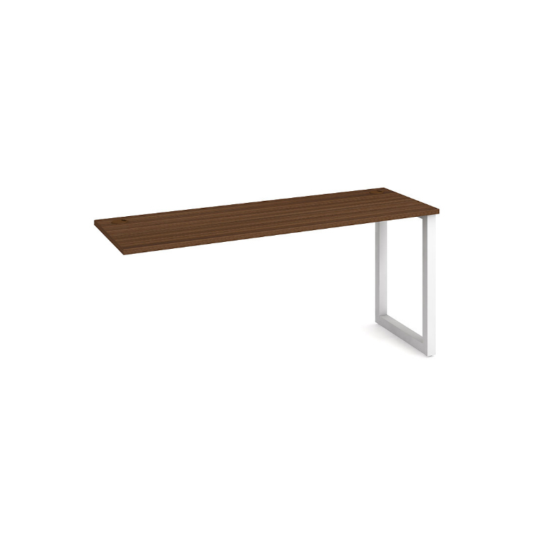 Prídavný pracovný stôl 160x60 cm s kovovými nohami. Konštrukcia kovovej podnože tvaru O má zabudované rektifikačné nožičky pre dokonalé vyrovnanie nerovnosti podlahy. Je to dôležité najmä keď niekoľko stolov je umiestnených vedľa seba, Prídavný pracovný stôl UNI O umožňuje veľkorysé rozšírenie pracovnej plochy do rôznych tvarov, alebo jednoduché tzv. reťazenie. Pri kolmom napojení stolov do tvaru L v mieste spoja sa nepoužije noha. Pod pracovným stolom tak vznikne väčší priestor bez prekážky. Farby pracovného stola: sivá, agát, buk, jelša, dub, čerešňa, orech. Farby kovovej konštrukcie: Biela 9016, Čierna RAL 9005, Sivá RAL 9006.