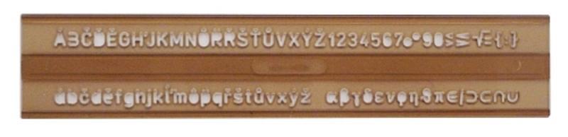 Písmenková šablóna na prekreslovanie. Veľkosť písmen 5 mm.