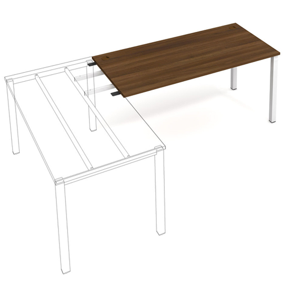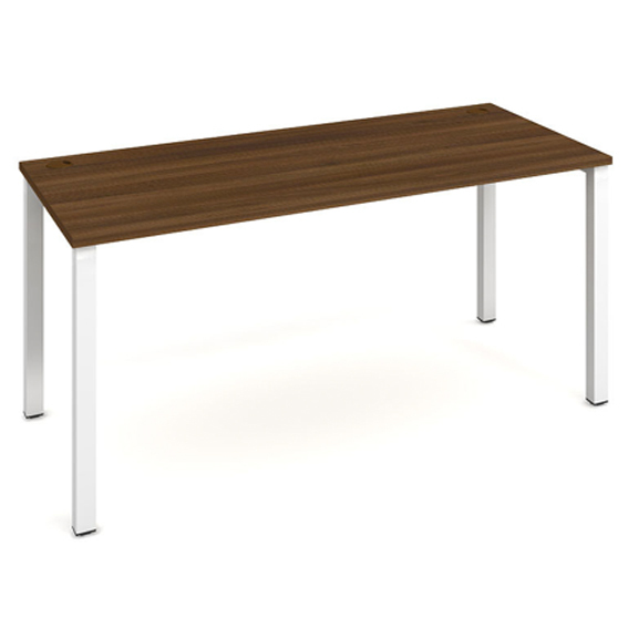 Prídavný pracovný stôl 160 x 60 cm pre kolmý tvar pre kolmú zostavu ku stolom US (USD, UJ) 160 a 180 cm.. Konštrukcia kovovej podnože má zabudované rektifikačné nožičky pre dokonalé vyrovnanie nerovnosti podlahy. Je to dôležité najmä keď niekoľko stolov je umiestnených vedľa seba, Prídavný pracovný stôl UNI umožňuje veľkorysé rozšírenie pracovnej plochy do rôznych tvarov, alebo jednoduché tzv. reťazenie. Pri kolmom napojení stolov do tvaru L v mieste spoja sa nepoužije noha. Pod pracovným stolom tak vznikne väčší priestor bez prekážky. Farby pracovného stola: sivá, agát, buk, jelša, višňa, čerešňa, calvados, orech. Farby kovovej konštrukcie: Biela, Čierna RAL 9005, Sivá RAL 9006.