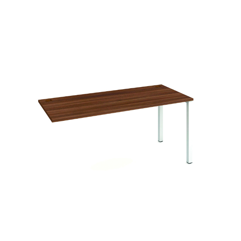 Prídavný pracovný stôl 160 x 80 cm s kovovými nohami. Konštrukcia kovovej podnože má zabudované rektifikačné nožičky pre dokonalé vyrovnanie nerovnosti podlahy. Je to dôležité najmä keď niekoľko stolov je umiestnených vedľa seba, Prídavný pracovný stôl UNI umožňuje veľkorysé rozšírenie pracovnej plochy do rôznych tvarov, alebo jednoduché tzv. reťazenie. Pri kolmom napojení stolov do tvaru L v mieste spoja sa nepoužije noha. Pod pracovným stolom tak vznikne väčší priestor bez prekážky. Farby pracovného stola: sivá, agát, buk, jelša, dub, čerešňa, orech. Farby kovovej konštrukcie: Biela 9016, Čierna RAL 9005, Sivá RAL 9006.