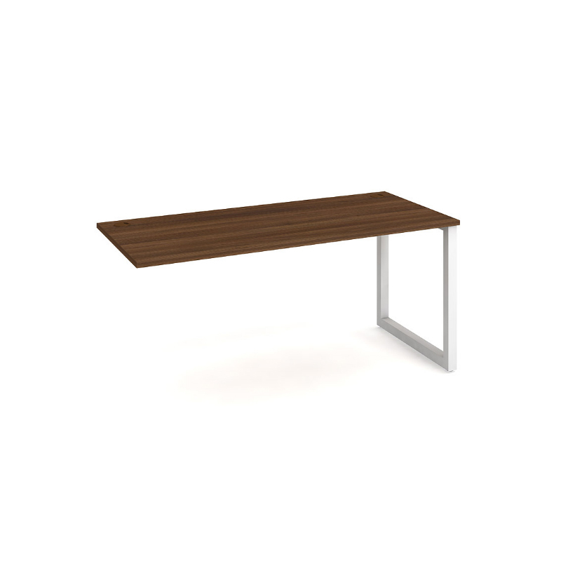 Prídavný pracovný stôl 160x 80 cm s kovovými nohami. Konštrukcia kovovej podnože tvaru O má zabudované rektifikačné nožičky pre dokonalé vyrovnanie nerovnosti podlahy. Je to dôležité najmä keď niekoľko stolov je umiestnených vedľa seba, Prídavný pracovný stôl UNI O umožňuje veľkorysé rozšírenie pracovnej plochy do rôznych tvarov, alebo jednoduché tzv. reťazenie. Pri kolmom napojení stolov do tvaru L v mieste spoja sa nepoužije noha. Pod pracovným stolom tak vznikne väčší priestor bez prekážky. Farby pracovného stola: sivá, agát, buk, jelša, dub, čerešňa, calvados, orech. Farby kovovej konštrukcie: Biela 9016, Čierna RAL 9005, Sivá RAL 9006.