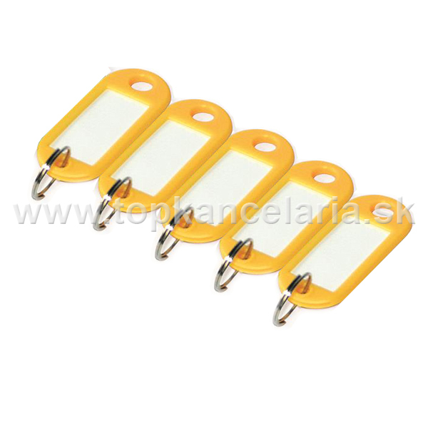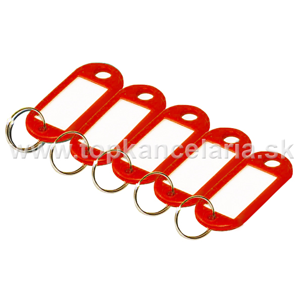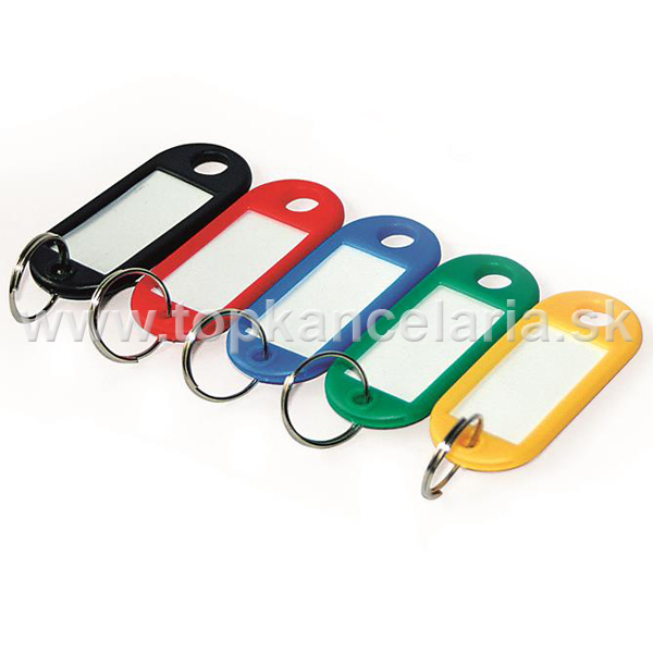 Visačky na kľúče vyrobené z modrého plastu. Okienko s bielou popisovateľnou etiketou.
