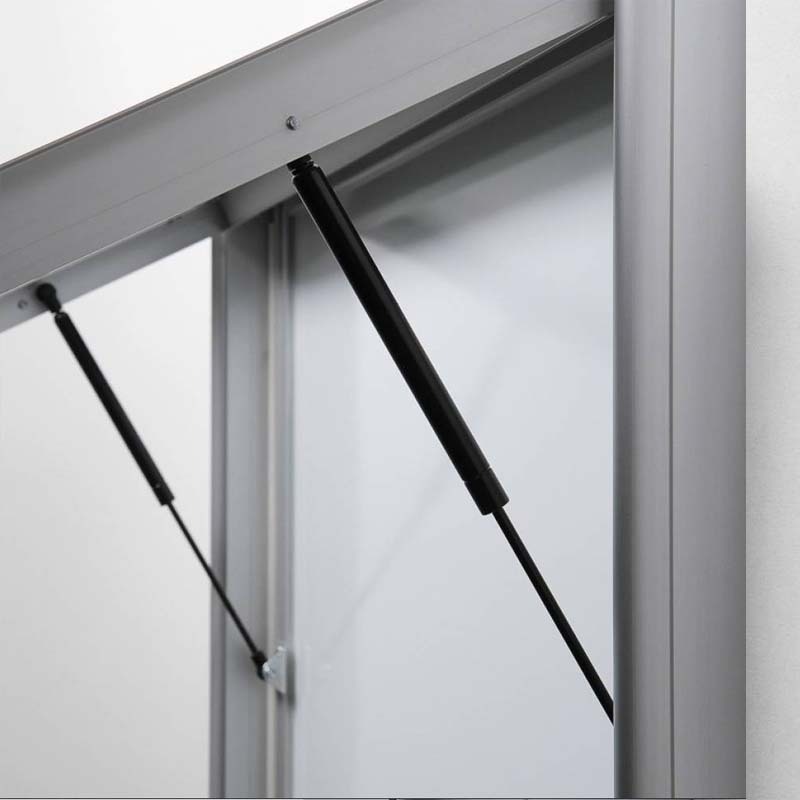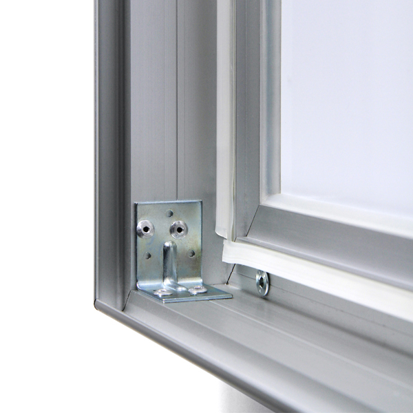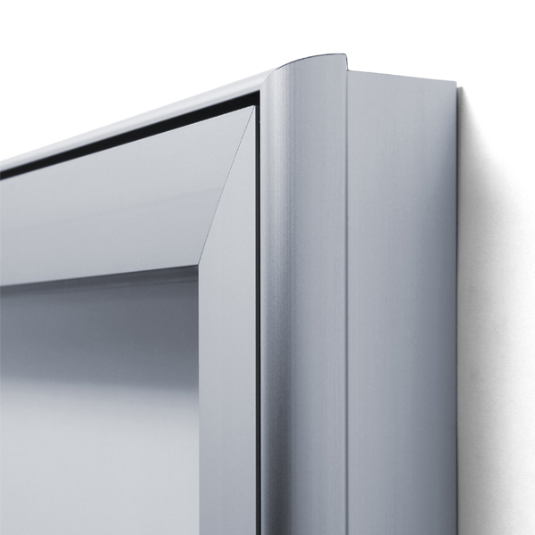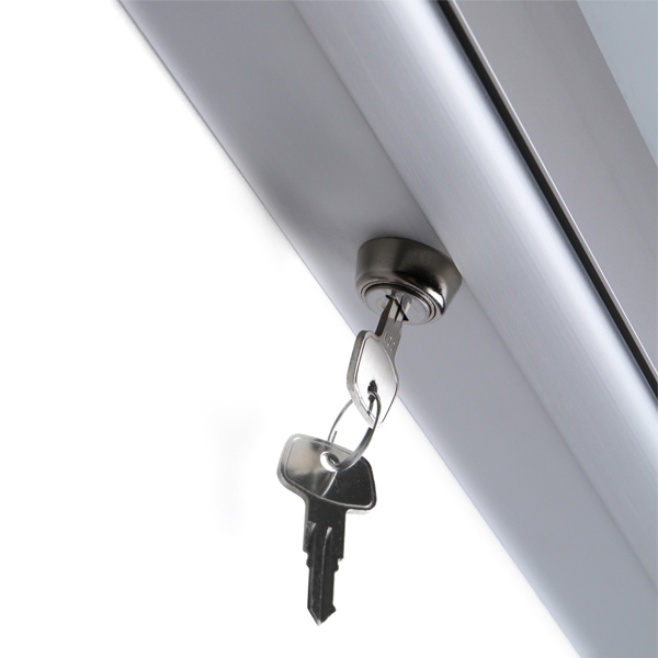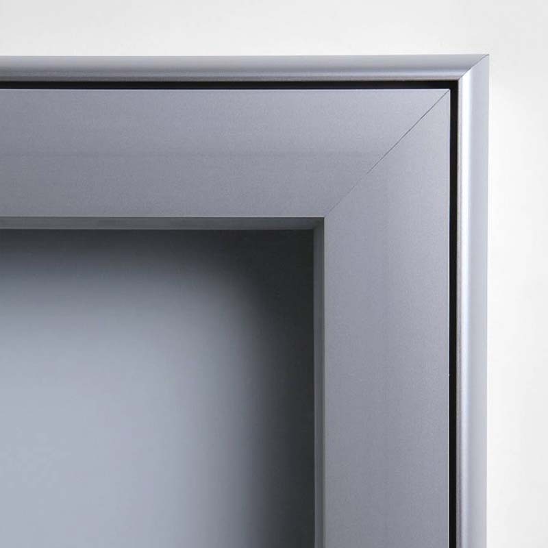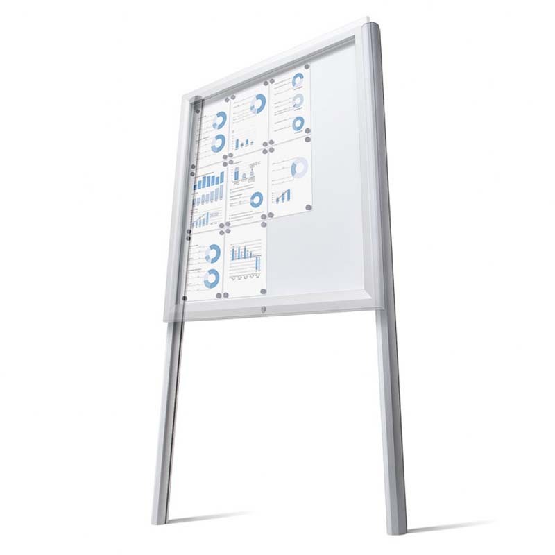 Robustná exteriérová vitrína s kapacitou 8×A4 je vyrobená zo strieborne eloxovaného hliníka, ktorý dodáva konštrukcii aj dverám vysokú odolnosť a elegantný vzhľad. Sklenená výplň dverí je z bezpečnostného skla a vďaka osadenému gumovému tesneniu sú dvere dokonale vodeodolné. Zadná biela lakovaná magnetická stena umožňuje upevnenie dokumentov pomocou magnetov a je zároveň popisovateľná popisovačmi na biele tabule, čo robí vitrínu praktickým a všestranným riešením pre vonkajšie využitie.