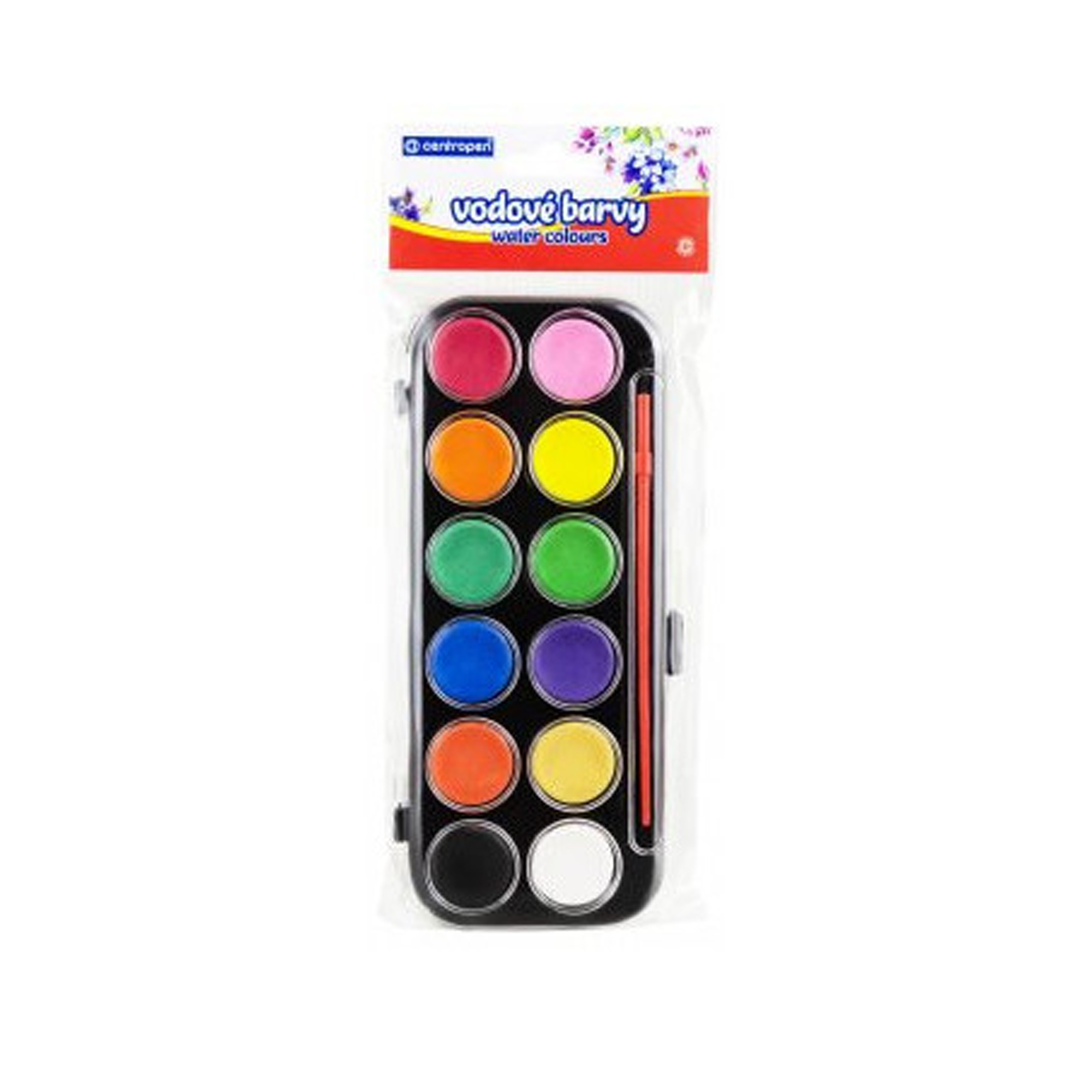 Vodové farby 12 farieb 30mm + štetec Centropen 9540