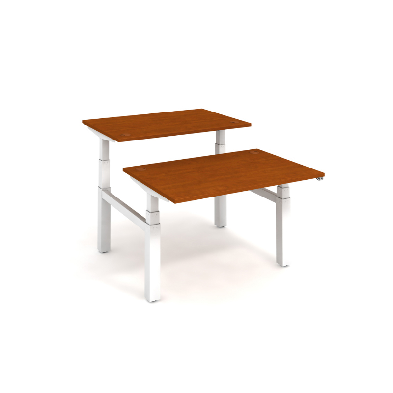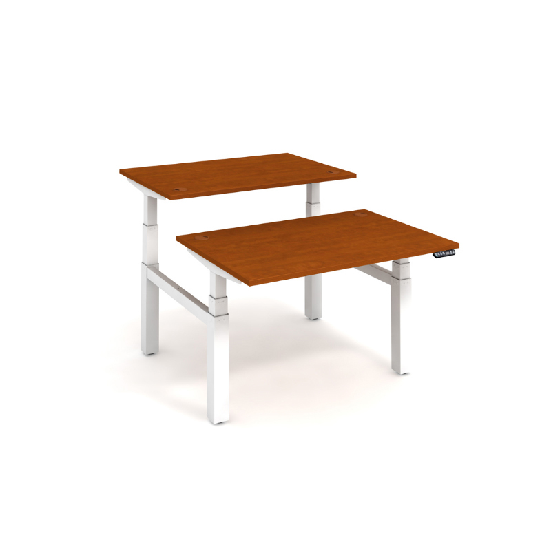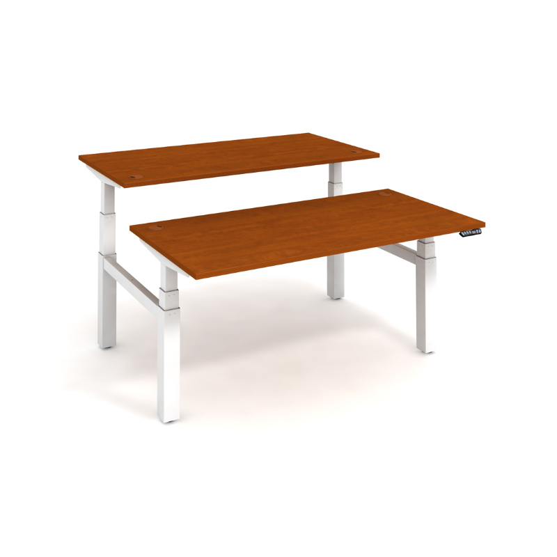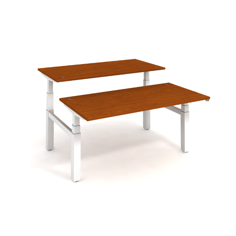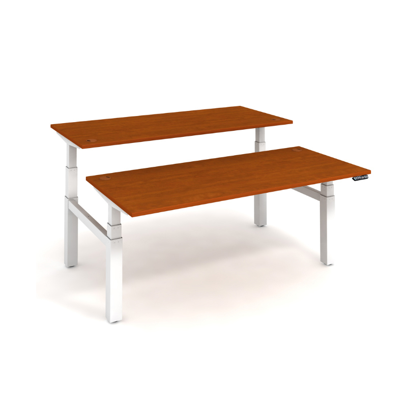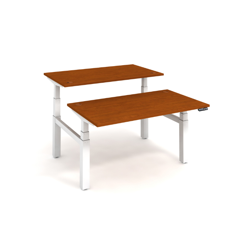 Ergonomický elektrický výškovo nastaviteľný stôl MOTION DUAL s 3 segmentovým ( výška 610 - 1280mm ) zdvíhacím mechanizmom. MOTION DUAL umožnuje komfortné pracovisko pre dvoch ľudí. Správne nastavenie sedenia znižuje preťaženie chrbtice. Nesprávne sedenie v dnešnej dobe je nazývané aj ako civilizačná choroba, ktorou trpia už deti školskom veku. Zlé návyky pri nesprávnom sedení pri PC, si prenášajú do dospelosti. Telo a hlavne chrbtica sa začne prispôsobovať jednostrannému zaťaženiu. Nesprávne sedenie spôsobuje výhrez medzistavcovej platničky v bedrovej a krčnej chrbtici, skoliozu, bolesti hlavy, závraty, a chronické bolesti chrbtice. Vdaka správne nastavenej výšky pracovnej dosky získa vaše predlaktie podporu, čím sa uľaví trapézovým svalom a tak umožní relaxáciu šije. Sed je neprirodzenou polohou človeka. Stoly MOTION Dual vám umožnia meniť polohu a pokračovať v práci v stoji.