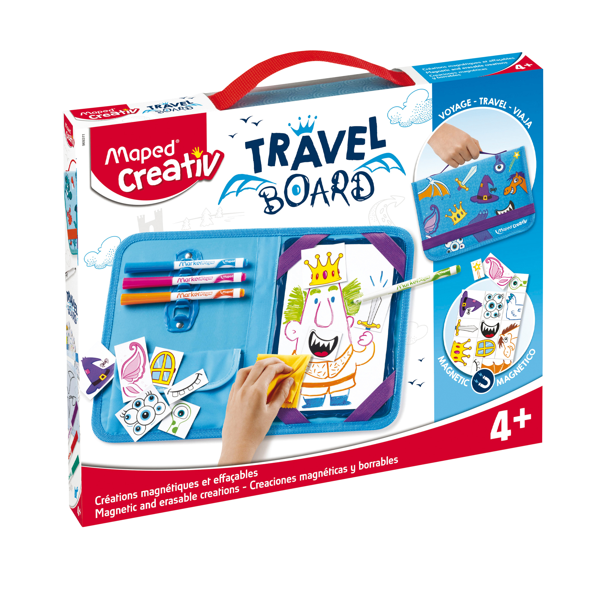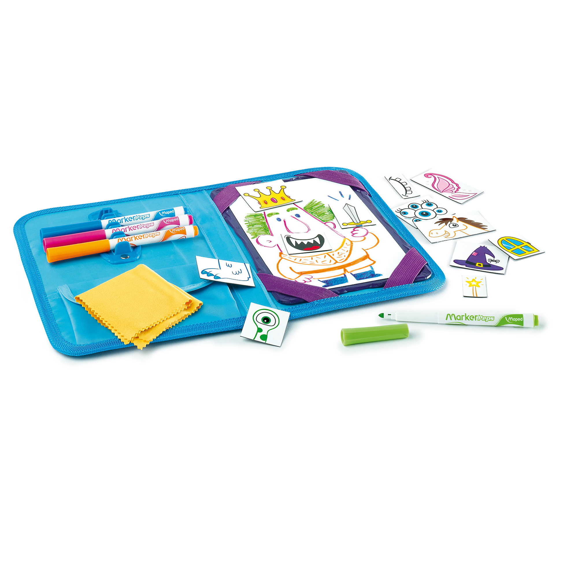 Cestovný kufrík je skvelým spoločníkom pre deti, ktoré milujú kreslenie a maľovanie. Obsahuje 1 magnetickú tabuľku, 4 farebné fixky Marker'Peps, 14 magnetických obrázkov a handričku. Magnetická tabuľka je umiestnená v kufríku, čo umožňuje ľahké maľovanie a kreslenie kdekoľvek a kedykoľvek.