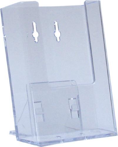 Závesný nástenný stojan vyrobené z číreho jednoliateho plastu pre buletiny a propagačné materiály A5. Pomocou skrutiek je možné upevniť vo zvislej polohe na stenu, panel alebo policu. Formát: A5