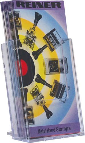 Jednoliate stojančeky vyrobené z číreho plastu pre buletiny a propagačné materiály pre rôzne formáty. Pomocou skrutiek je možné upevniť vo zvislej alebo vodorovnej polohe na stenu, panel alebo policu. Formát: A5 Vnútorné rozmermy (šxh): 107 x 30 mm Priečinky: 1/3 A4