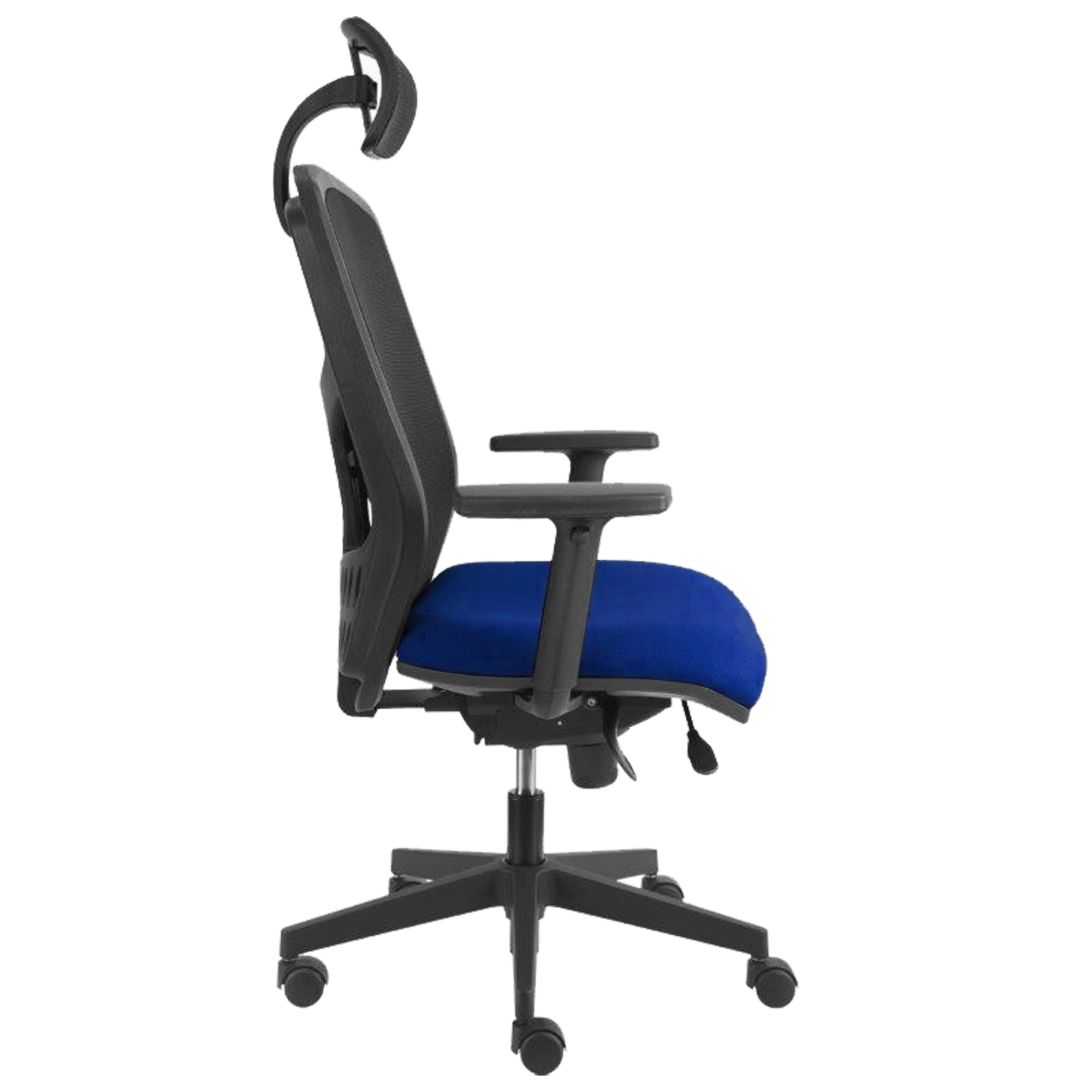 Kancelárska stolička s výškovo nastaviteľnou sieťovou opierkou a so synchro mechanikou s nosnosťou do 150kg. Má samostatne výškovo nastaviteľnú bedrovú opierku, podrúčky a nastaviteľný podhlavník 3D. Sedadlo je vyrobené z injektovanej peny. Šírka sedadla 51cm. Čierny kríž pre vyššiu záťaž pr.64cm. Pogumované kolieska pr.65 vhodné na všetky povrchy. Váha stoličky 18kg