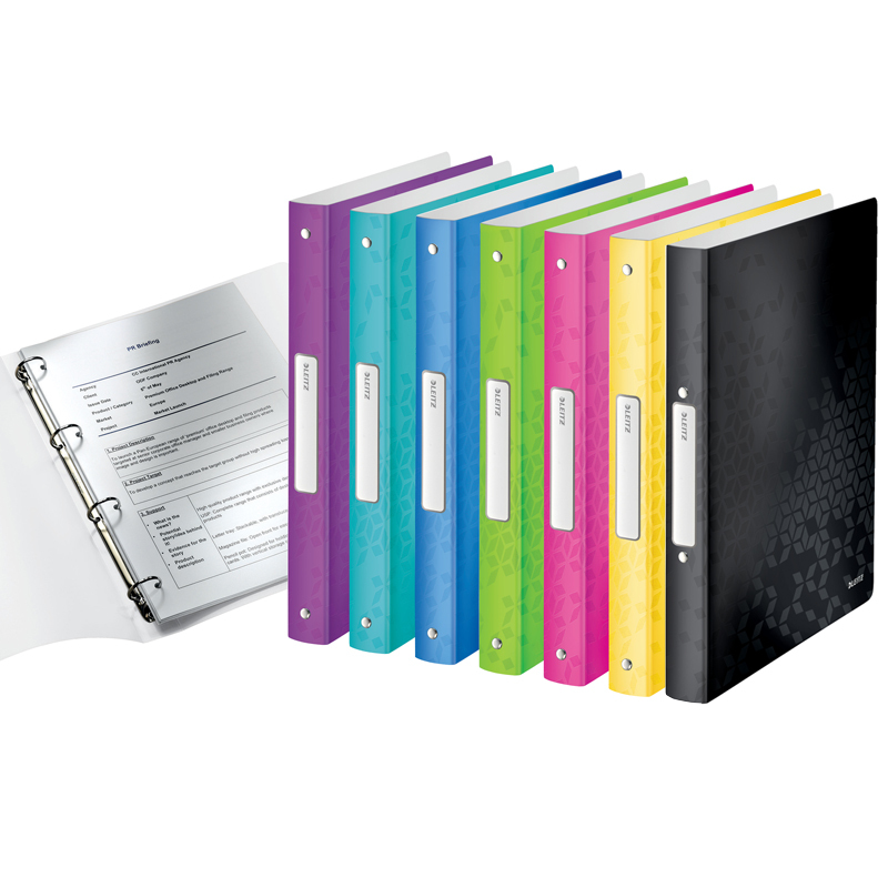 Ultra lachký mobilný štvorkrúžkový zakladač na cesty z radu WOW. Používa mechaniku 30mm tvaru D. Šírka chrpta 50mm. Uzatváranie pomocou gumičky. Žiarivé farby, ktoré zaujmú na prvý pohľad nie sú určené len pre výnimočné pracovné prostredie.