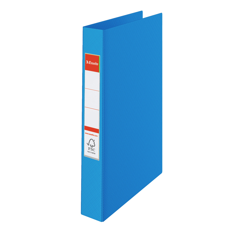 Modré dvojkrúžkové zakladače z pevného 750g prešpánového kartónu. Priemer krúžkov 20mm. Šírka chrbta 23mm. Kapacita 50 hárkov 80g papiera A4.