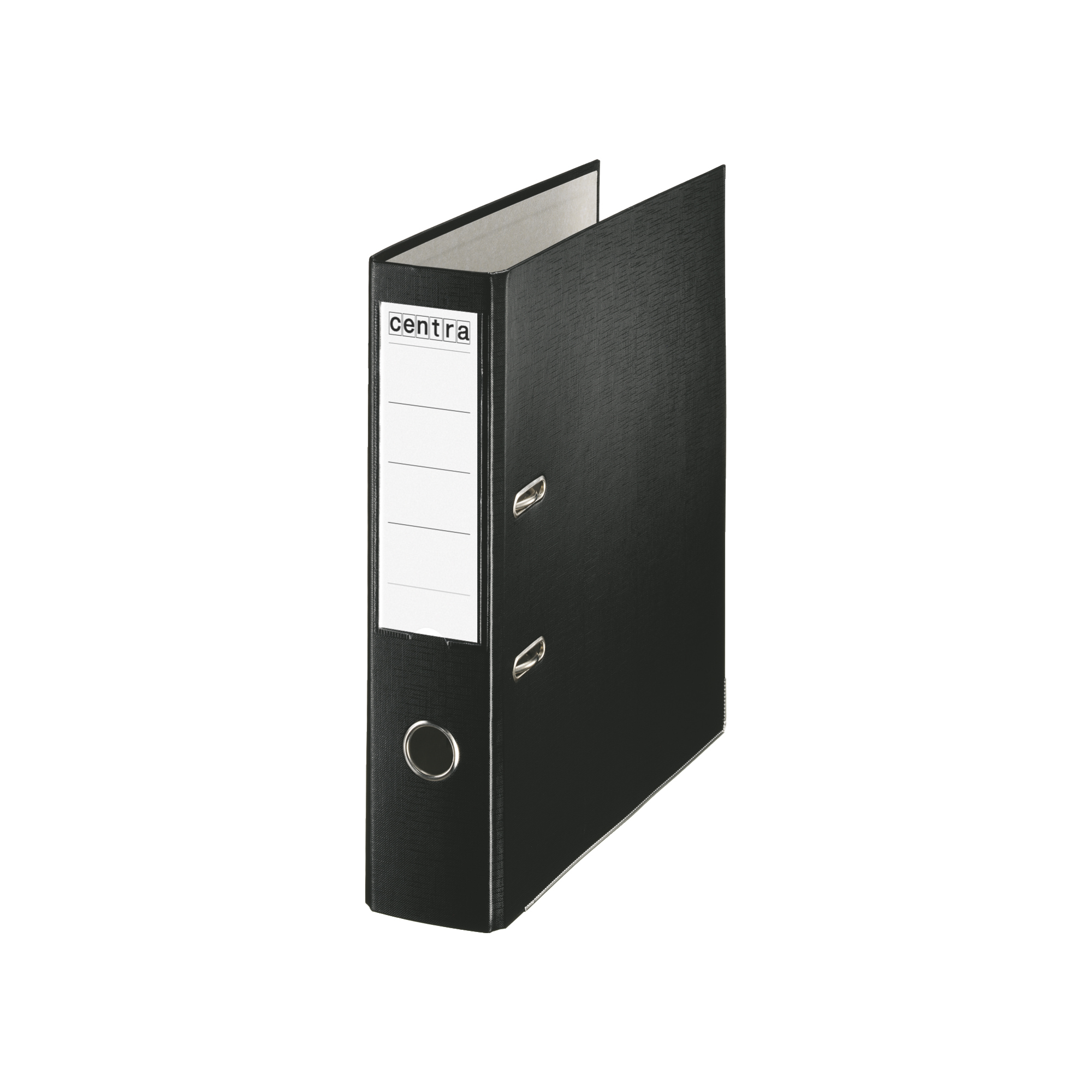 Poloplastový zakladač z vonka potiahnutý fóliou z vnútra bielym papierom. Má chrbtové vrecko s vymeniteľným štítkom. Zakladač je vybavený chrbtovým krúžkom pre ľahšie uchopenie a s kovovými lištami kvôli dlhšej životnosti. Šírka chrbta 7,5cm. Farba čierna