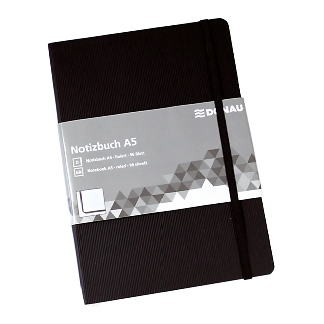 Zápisník A5 s gumičkou – čierny, linajkový. Mäkký obal imitácie kože pôsobí luxusne a zároveň je príjemne na dotyk.