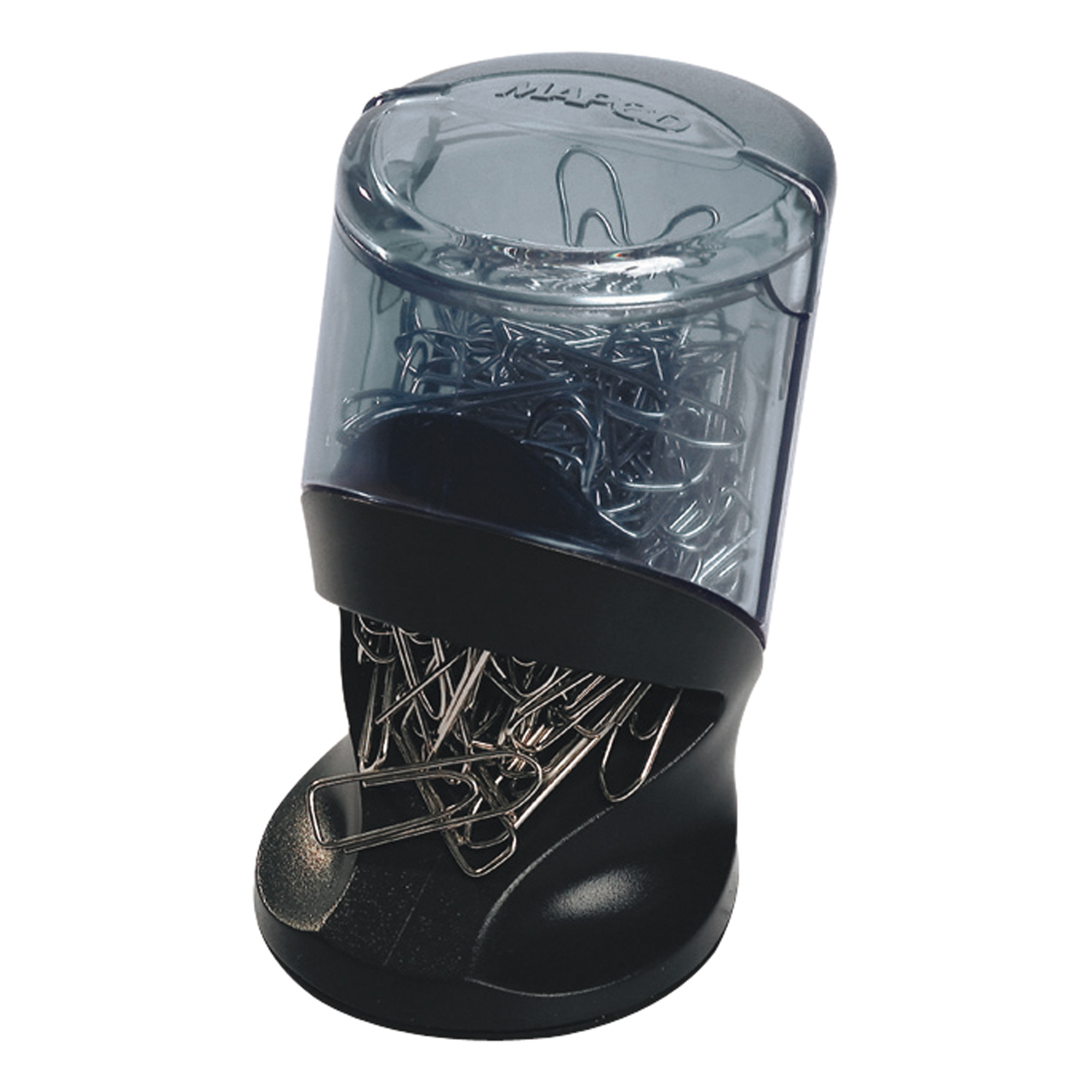 Zásobník na kancelárske sponky je vybavený praktickým magnetickým držiakom, ktorý uľahčuje manipuláciu so sponkami a zabraňuje ich rozsypaniu. Jeho nekĺzajúci podstavec zabezpečuje stabilitu na pracovnom stole. Priehľadná nádobka umožňuje ľahký prehľad o počte zostávajúcich sponiek. Súčasťou balenia je 100 kusov poniklovaných sponiek, ktoré sú odolné a vhodné na každodenné používanie v kancelárii či domácnosti.