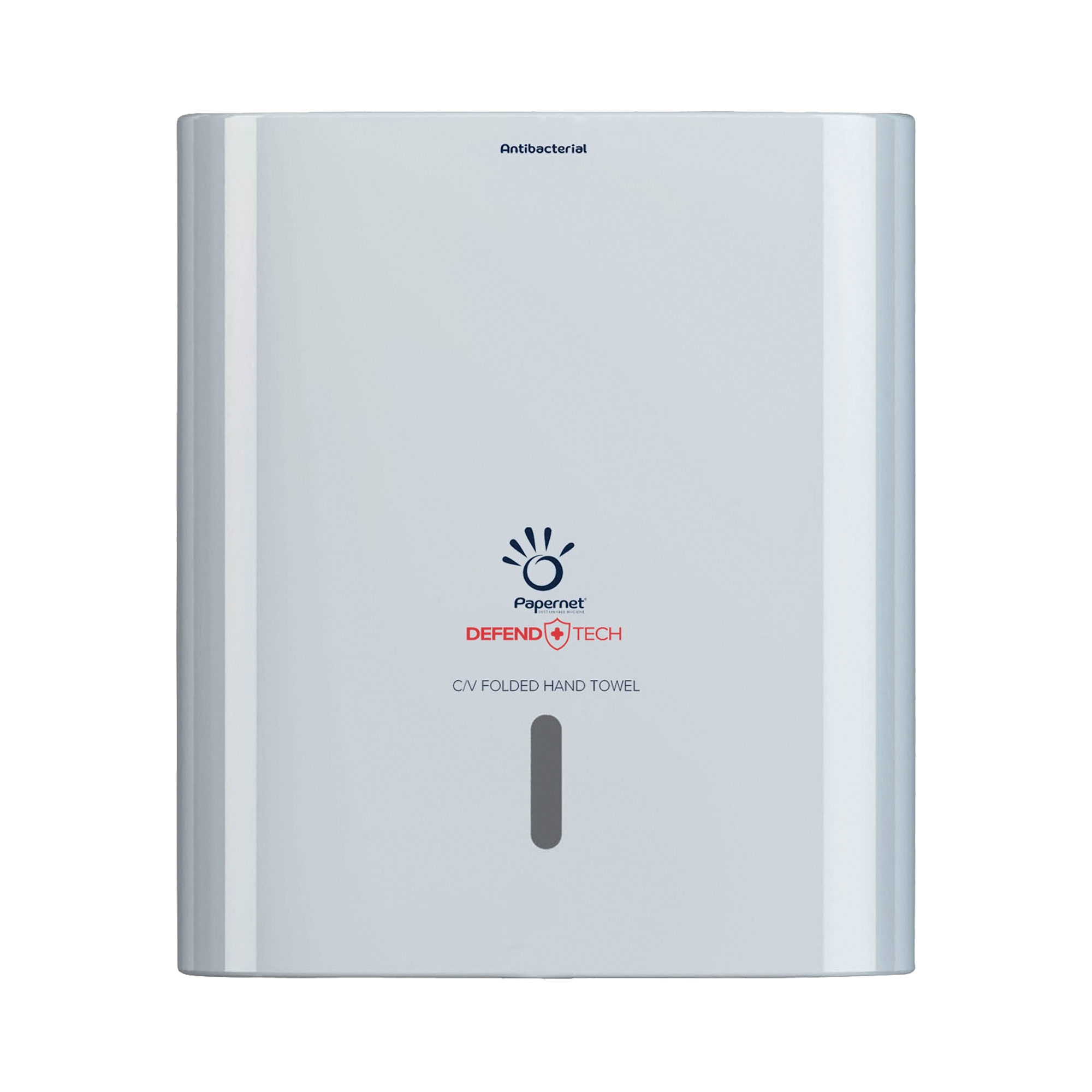 Zásobník Papernet na skladané papierové uteráky sa vyznačuje elegantným dizajnom a antibakteriálnou úpravou povrchu, čo zvyšuje jeho hygienické vlastnosti. Vyrobený z odolného bieleho plastu, ktorý obsahuje častice aktívneho striebra, tento zásobník znižuje riziko kontaminácie, čím je ideálny pre miesta s vysokými nárokmi na hygienu. Je univerzálny a kompatibilný s uterákmi typu "V", "ZZ". Má kapacitu až 500 utierok, čo zaručuje dlhšie používanie bez potreby častého dopĺňania.