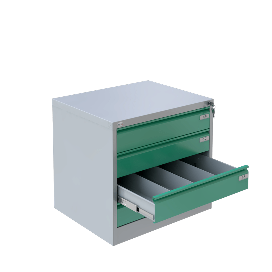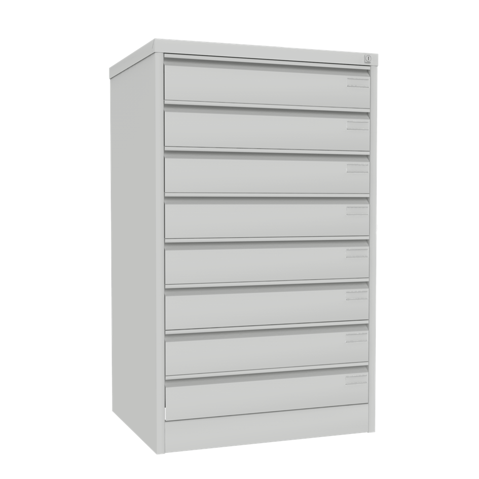 Uzamykateľná kovová skriňa na ukladanie kartoték formátu A6. Zásuvky sa vysúvajú na guľôčkových výsuvoch. Skriňa má…
