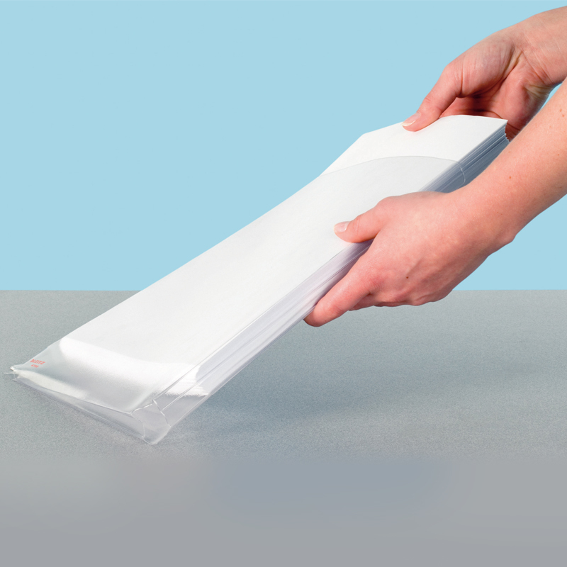 Závesné obaly Leitz A4 s rozšírenou kapacitou a s hladkým povrchom. Vďaka veľkej kapacite sú zvlášť vhodné na zakladanie katalógov, cenníkov alebo objemnejších dokumentov. Kvôli dlhej životnosti sú vyrobené z pevného hrubého polypropylénu hrúbky 170 mikrónov. Spodný a bočný klin o šírke 20 mm zvyšuje kapacitu obalu, otvorené spodné rohy obalov zabezpečia, že sa rohy vašich objemnejších dokumentov v obale neohnú a nezničia. Multiperforácia je zosilnená bielym plastovým prúžkom a je vhodná na založenie obalu do pákového aj krúžkového zakladača. Fromát A4. Kapacita obalu až 2000 listov 80g/m2. Balenie sáčok 10ks.