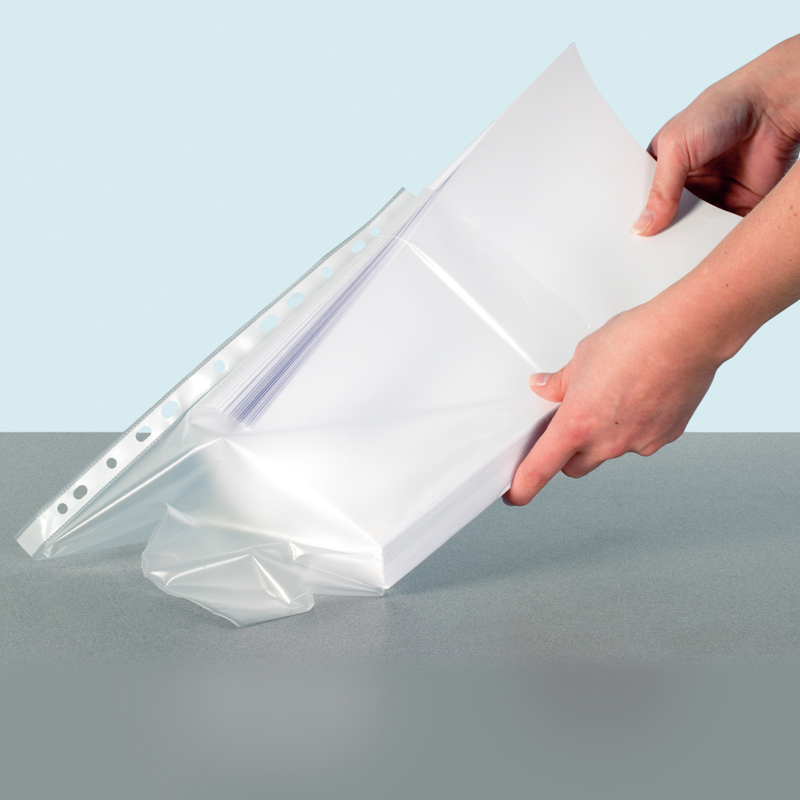 Extra široké a pevné euroobaly na objemné dokumenty formátu A4 Maxi. Kapacita euroobalu je 60-80 listov 80 g/m2. Multiperforácia na ukladanie do krúžkových zoraďovačov. Vyrobené z polypropylénu hrúbky 100 mikrónov. Embosovaní matný povrch. Vnútorný rozmer euroobalu 32 x 22 cm. Balenie sáčok 25ks.