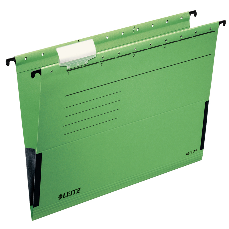 Vysoko kvalitný závesný obal s rozšíreným dnom 40mm, zo silnými a odolnými závesnými lištami pre objemnejšie a ťažšie dokumenty. Boky závesného obalu sú otvorené, vhodné pre voľné vkladané nedierovaných papierov formátu A4. . Súčasťou závesného obalu je aj rozlišovač s vymeniteľným štítkom pre popis obsahu. Vyrobené zo 100% recyklovaného kartónu. Certifikované Modrým Anjelom (Blue Angel). Rozmery: 348 x 270 x 1 (mm)