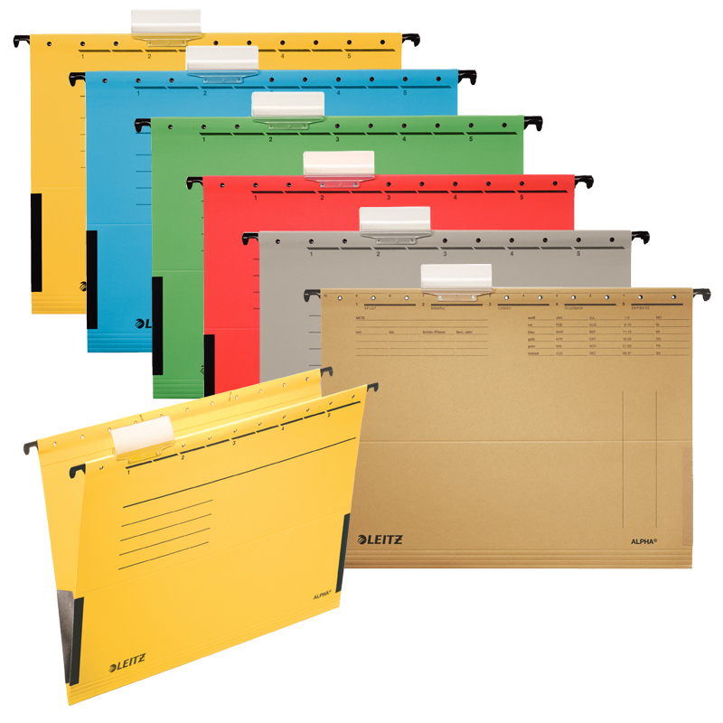 Závesné obaly A4 v rôznych farbách Esselte Classic sú vyrobené zo silného kartónu 205g/m2. Súčasťou obavou sú plastové rozlišovane s vymeniteľným papierovým štítkom. Rozlišovane je možné upevniť v 9 rôznych pozíciách. Lisované dno umožňuje zvýšiť kapacitu dosky až na 3 cm. Balenie obsahuje 5 ks kartónových prúžkov širokých 2 cm, ktoré po zasunutí do špeciálnych otvorov spevnia dno dosiek. Formát A4, rozpätie vodiacich líšt 330 mm. Cena za balenie 10ks.