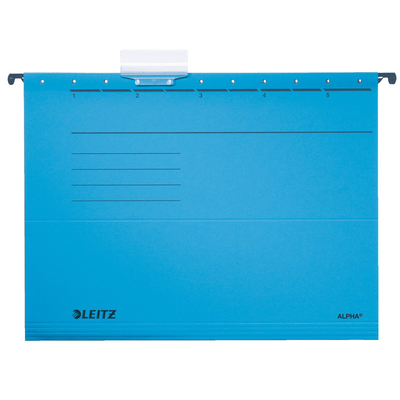 Modré závesné obaly A4 Esselte Classic sú vyrobené zo silného kartónu 205g/m2. Súčasťou obavou sú plastové rozlišovane s vymeniteľným papierovým štítkom. Rozlišovane je možné upevniť v 9 rôznych pozíciách. Lisované dno umožňuje zvýšiť kapacitu dosky až na 3 cm. Balenie obsahuje 5 ks kartónových prúžkov širokých 2 cm, ktoré po zasunutí do špeciálnych otvorov spevnia dno dosiek. Formát A4, rozpätie vodiacich líšt 330 mm. Cena za balenie 25ks.