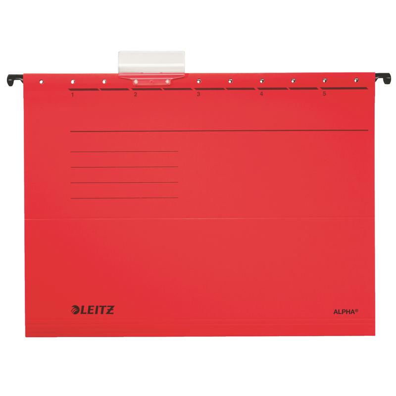 Závesné obaly s bočnicami na zakladanie dokumentov a voľných listov do formátu A4. Majú plátenné čierne bočnice, ktoré zabraňujú vypadávaniu dokumentov. Závesné obaly sú vyrobené z kvalitného 230g papiera. Z vonkajšej strany je potlač pre prehľadné popisovanie. Obaly majú kovové závesné háčiky, ktoré garantujú dlhodobé používanie. Súčasťou balenia sú číre plastové držiaky a papierové štítky. Cena je uvedená za balenie 25ks. Farba: modrá, červená, zelená, žltá