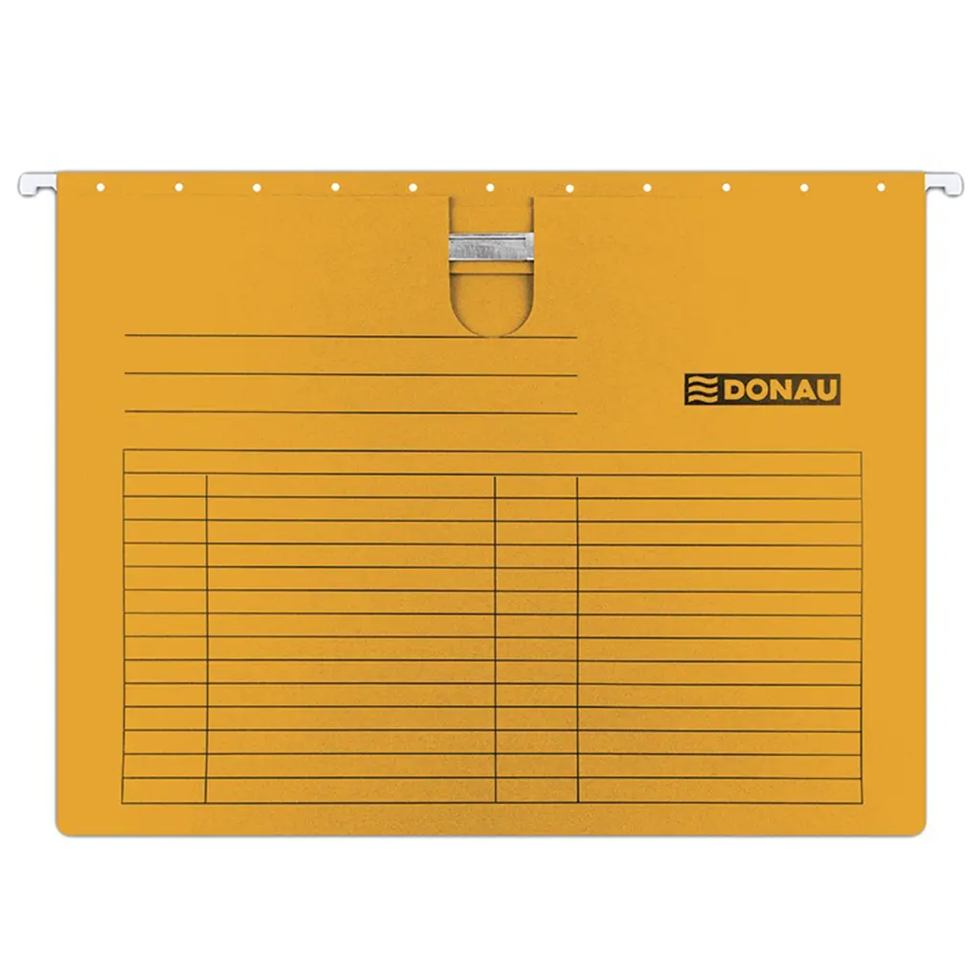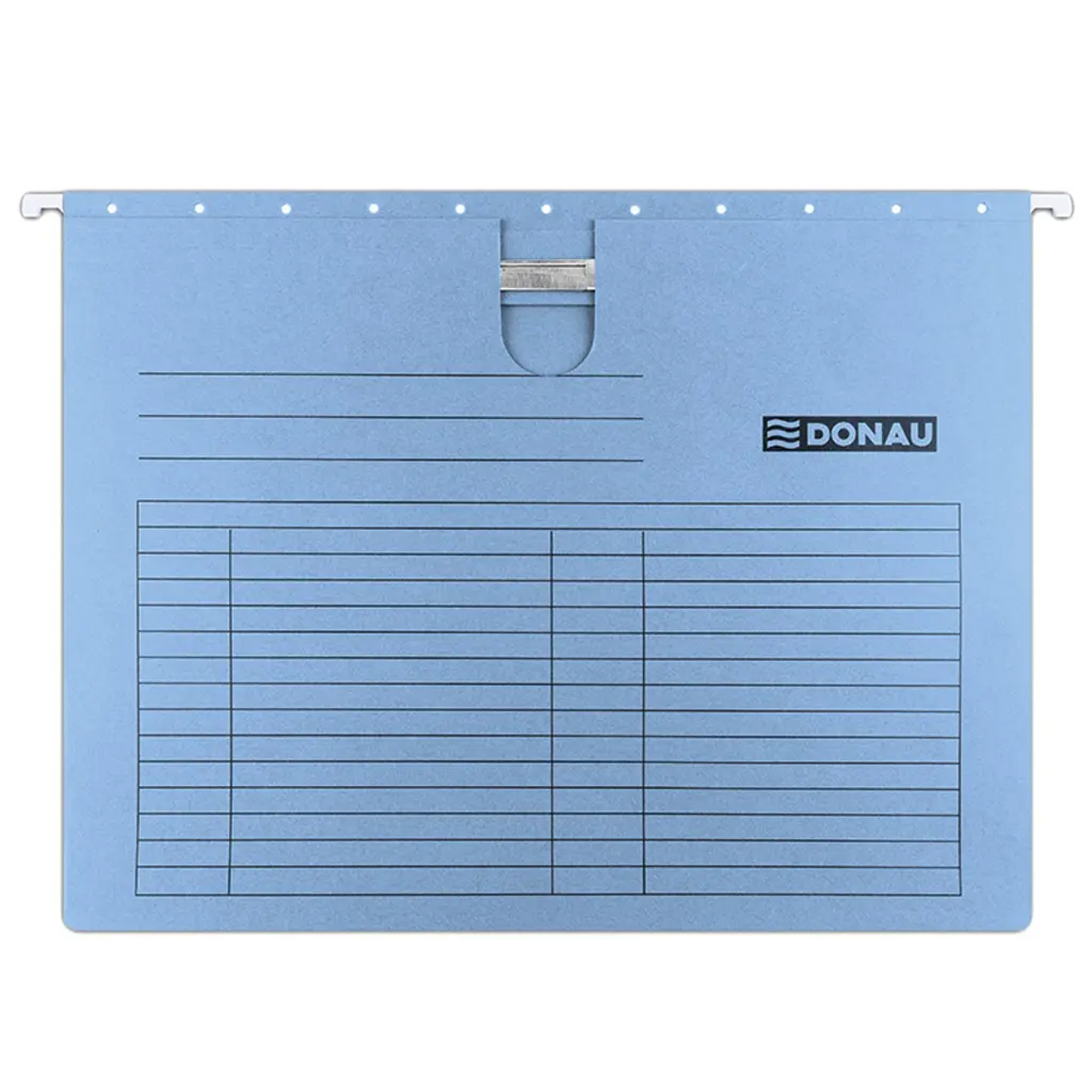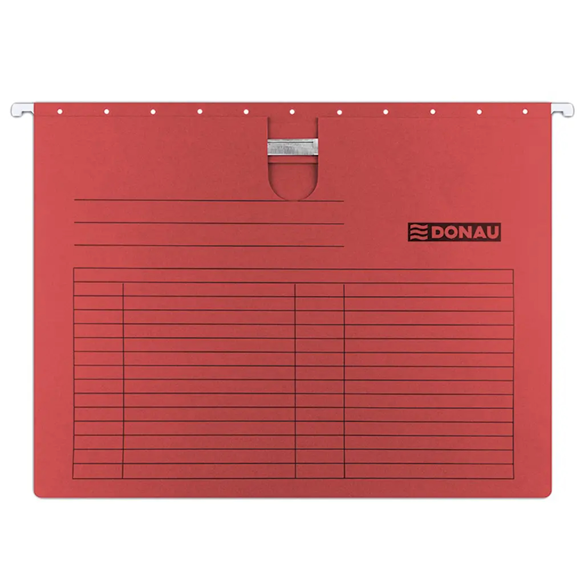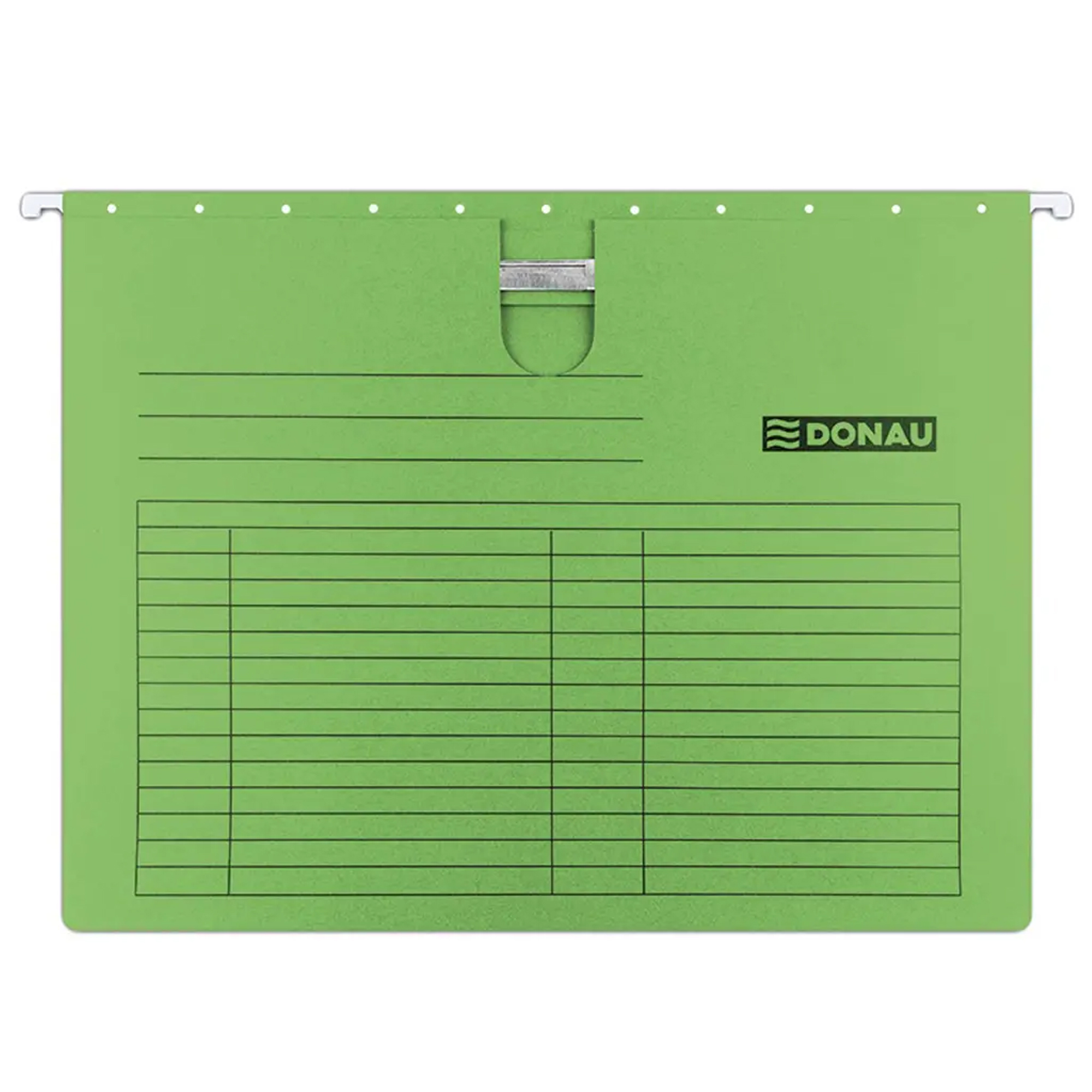 Závesný obal na dierované dokumenty formátu A4 je vybavený výrezom pre palec, ktorý umožňuje jednoduché uchopenie. Tento obal má pevne zachytený chrbát, čo umožňuje bezpečné zakladanie jednotlivých spisov. Kovové závesné háčiky zaručujú jeho dlhodobé používanie. Súčasťou obalu je plastový index pre ľahkú orientáciu.