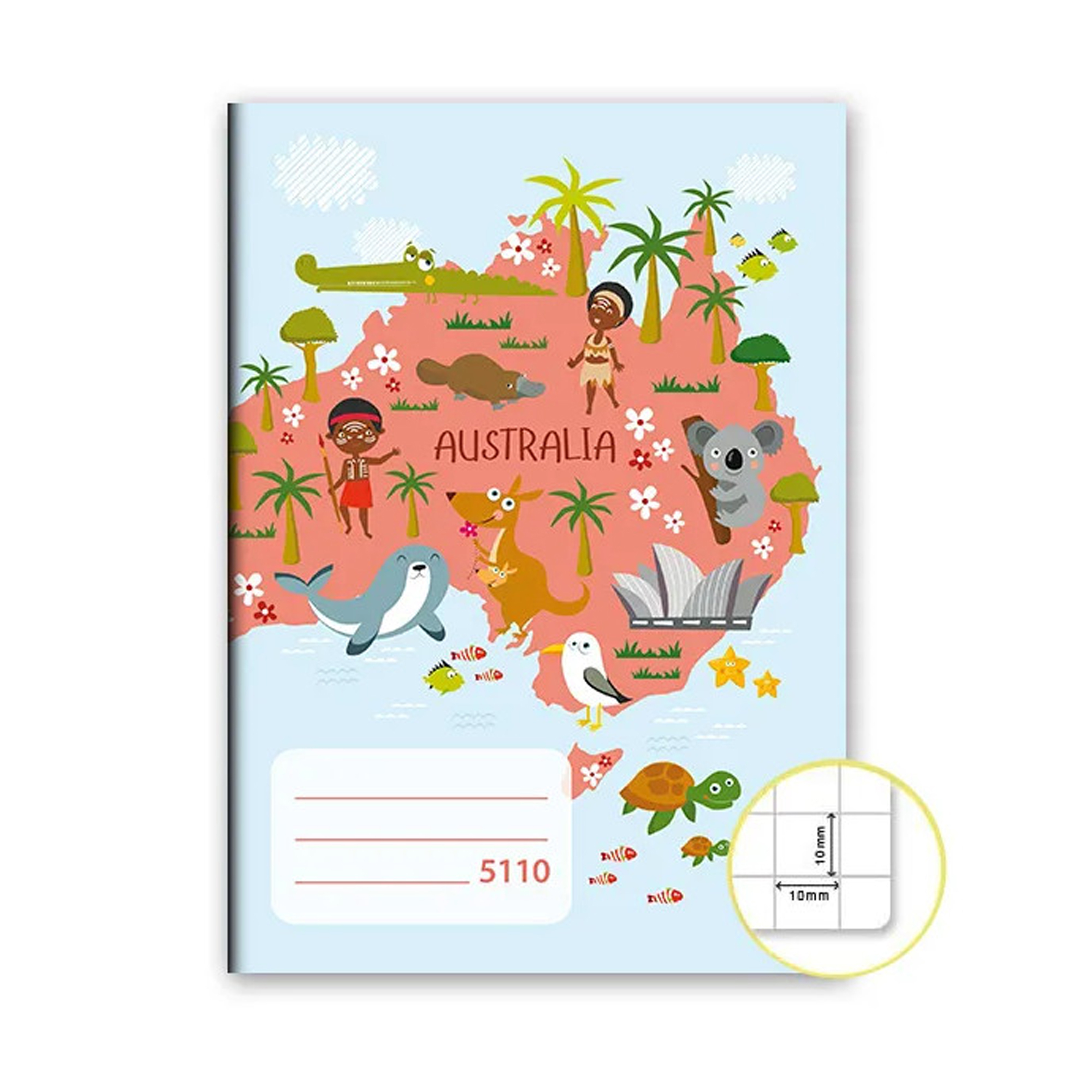 Štandardné školské zošity so štvorčekmy 10x10mm. Vyrobené z bezdrevného papiera s obojstranne natieraným ofsetovým papierom. Makká vazba. Počet listov 10. Formát A5.