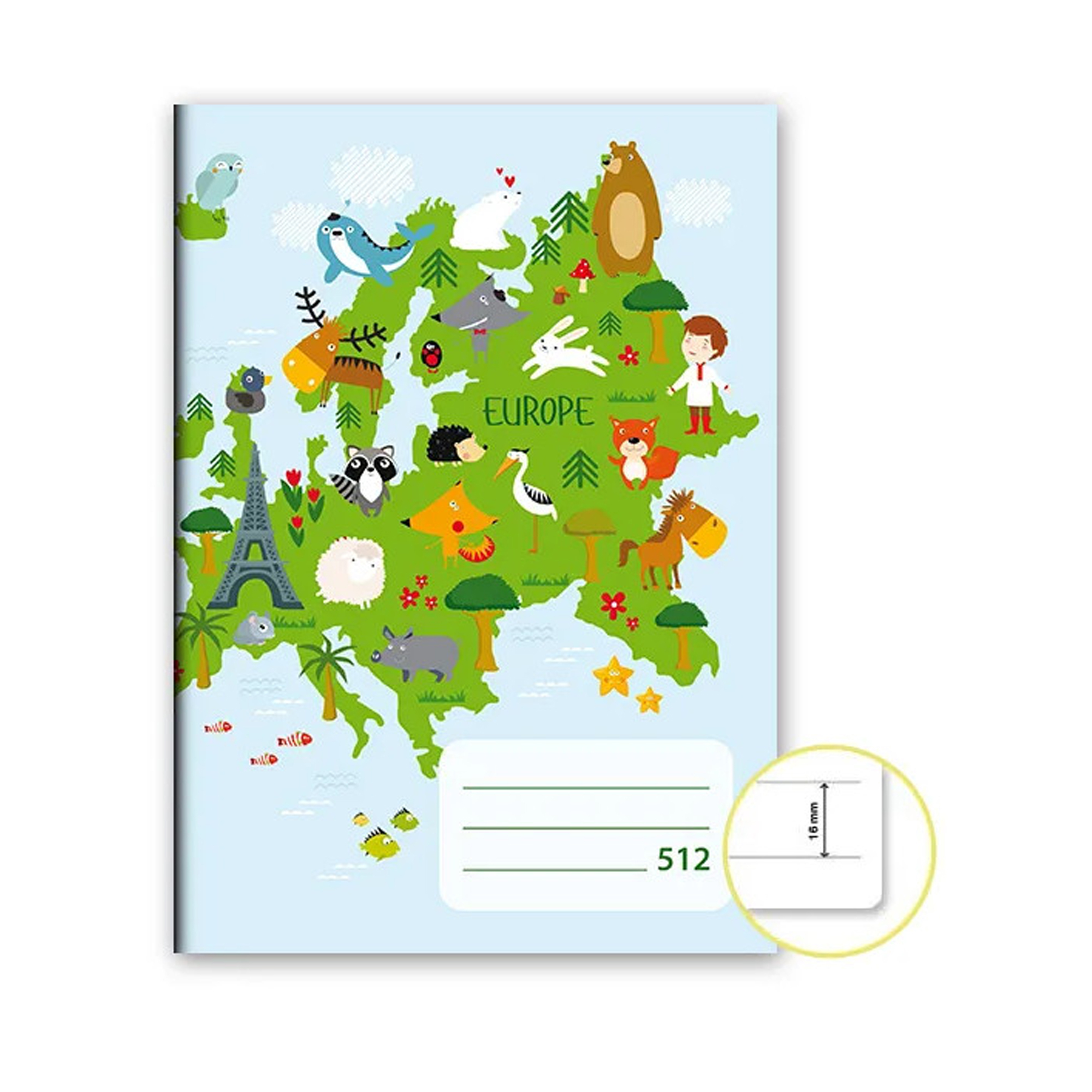 Štandardné školské zošity s linkovaním 16mm. Vyrobené z bezdrevného papiera s