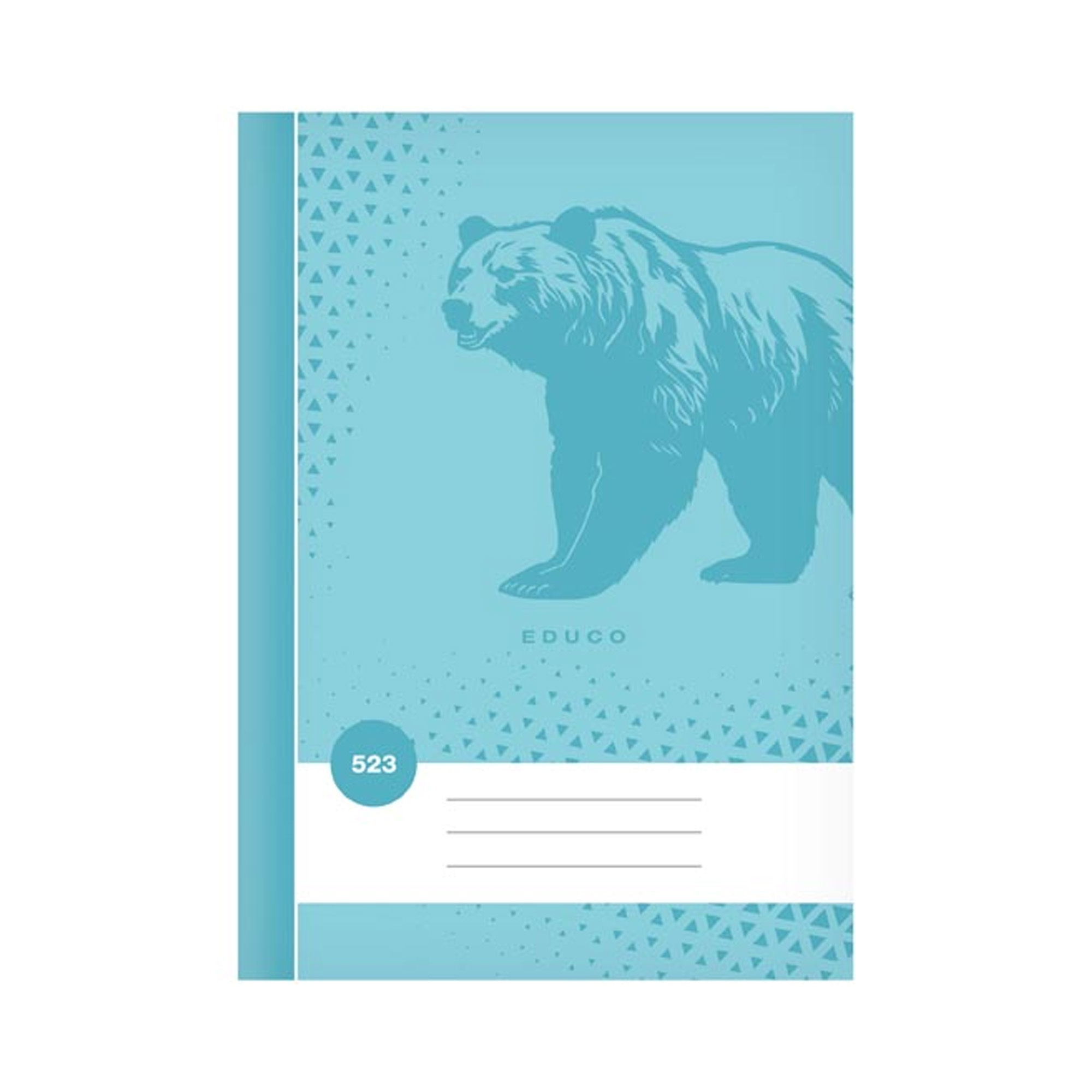 Štandardné školské zošity typ 523 s linkovaním 12mm v doskách z 200g kriedového papiera. Motív medveď v tyrkysovej farbe.