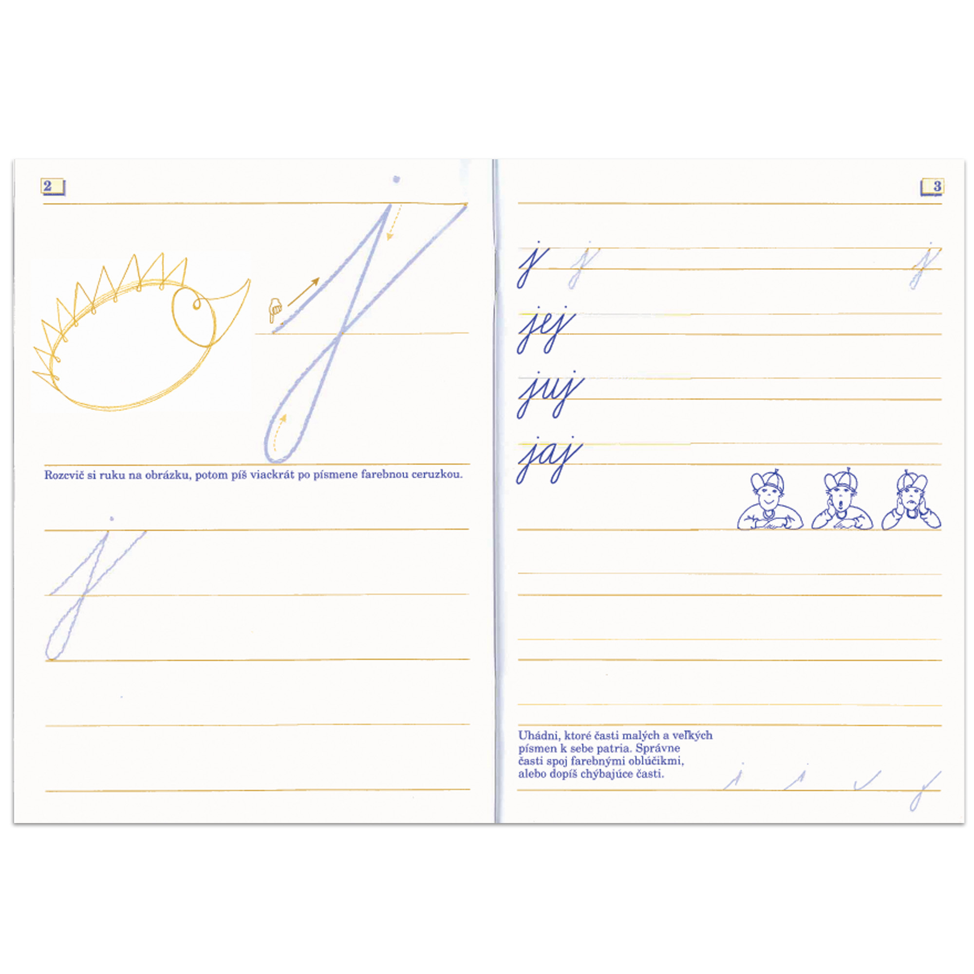 Vstup dieťaťa do školy je udalosťou, ktorá ho ovplyvní na celý život. Jej súčasťou je nácvik čítania a písania. Pre bezproblémové zvládnutie tejto základnej zručnosti zostavila autorka Šlabikára L. Virgovičová súbor inovovaných písaniek s predtlačou Písmenká – moji kamaráti, spolu s blokom prípravných cvikov Moje prvé čiary.Súbor sa skladá zo 6 zošitov s príťažlivým farebným vzhľadom, ktorý uľahčuje orientáciu žiakov i učiteľa. Na vnútornej strane obálky nájdu žiaci rady, ako má správne držať pero ľavák a pravák. Tretia strana obálky obsahuje prehľad malej a veľkej abecedy v písanej i tlačenej forme.