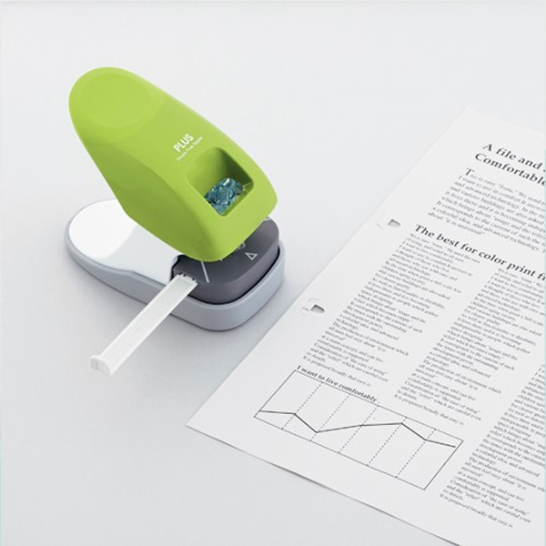 Nová patentovaná technológia zošívania bez použitia spiniek. Kapacita zošívania 10 listov. Súčasťou plastovej zošívačky je aj meradlo, ktorá Vám umožní podľa rysiek urobiť diery s maximálnym rozpätím 8 cm. Dierovanie je vhodné na vkladanie dokumentov do zakladačov. Rozmer zošívačky 7x13x11cm. Výroba Japonsko.
