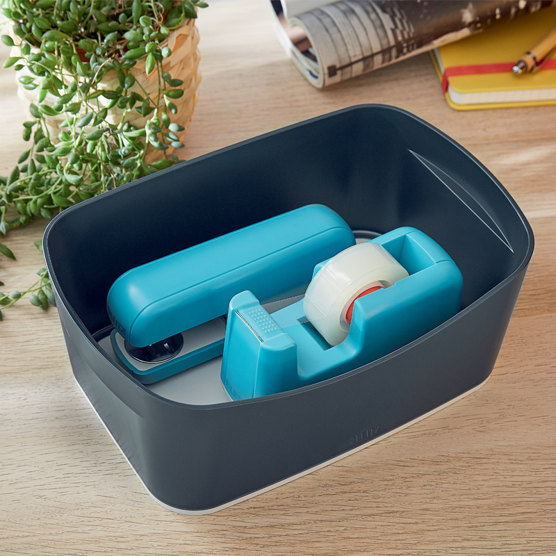 Dizajnový organizér je pevný na ukladanie a zároveň ideálny na prenášanie všetkých dôležitých predmetov, ako sú písacie potreby, drobné domáce náradie alebo napríklad make up. MyBox má certifikáciu Food safe, je vhodný na prenos teplých aj studených jedál, na uloženie potravín vo firemnej kuchynke či recepcii, napríklad čaju, kávy, mlieka a cukru, doma na ovocie a pod. Organizér je súčasťou modulárneho úložného systému Leitz MyBox, je kompatibilný s malým organizačným boxom, ale môže byť používaný aj samostatne. Organizér prvotriednej kvality je perfektným doplnkom vášho domova alebo kancelárie, uľahčí a spríjemní vám prácu. Rozmery 307 x 56 x 181 (mm) Kolekcia Leitz Cosy kombinuje komfort domáceho pohodlia s prvotriednou kvalitou a vytvára tak pozitívne a produktívne pracovné prostredie.