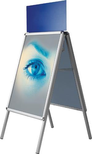 Obojstranné plagátové stojany s hliníkovými zaklapávacími rámami dodávané s ostrými alebo oblými rohmi. Pútače sú veľmi stabilné vďaka 25 x 25 mm nohám z hliníkového profilu s nárazuvzdorným a nerezovým kovovým zadným panelom. Stojany sú odolné voči vplyvom počasia: integrované otvory odvádzajú vodu, antireflexné krycie fólie chránia plagát proti UV žiareniu a odlesku svetla. Ako príslušenstvo je možné dokúpiť špeciálnu popisovateľnú čiernu fóliu pre školskú alebo tekutú kriedu.