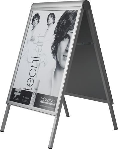 Pútače novej generácie - veľmi kvalitná a odolná hliníková konštrukcia. ktorá zaručuje dokonalú stabilitu vďaka 25 x 25 mm nohám z hliníkového profilu, chráni proti klimatickým vplyvom vďaka vodeodolnej a antireflexnej fólii. Plagát je chránený pred UV žiarením a následným blednutím. Mimoriadne nárazuvzdorná zadná stena pútača je vyrobená z nehrdzavejúceho kovu. Pútač je vybavený novým systémom klaprámu COMPASSO, ktorý zaručuje jednoduchú a rýchlu výmenu motívu. Ako príslušenstvo je možné dokúpiť špeciálnu popisovateľnú čiernu fóliu pre školskú alebo tekutú kriedu.